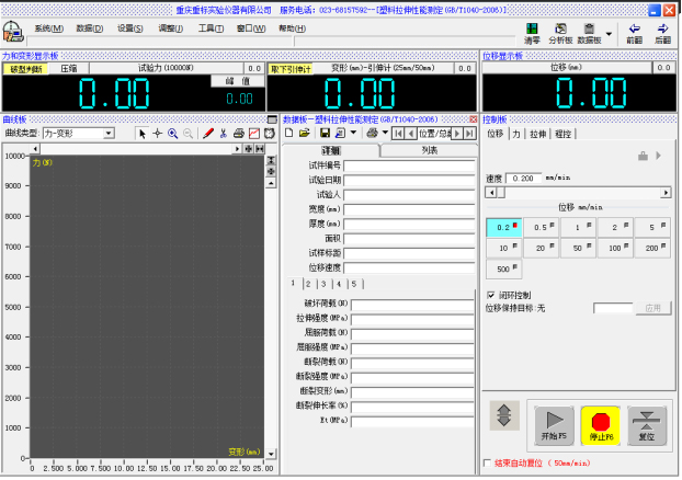 該測控軟件用于微機(jī)控制電子萬能試驗(yàn)機(jī)進(jìn)行各種金屬及非金屬(如,人造板等)的試驗(yàn),按照相應(yīng)標(biāo)準(zhǔn)完成實(shí)時(shí)測量與顯示、實(shí)時(shí)控制及數(shù)據(jù)處理、結(jié)果輸出等各種功能。