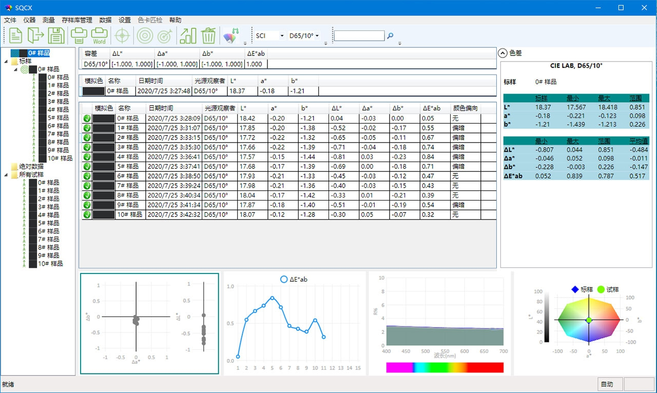 TS8260便攜臺式分光測色儀搭配的SQCX品質管理軟件,適用于各個行業的品質監控和顏色數據管理。將用戶的顏色管理數據化,比較顏色差別,生成測試報告,提供多種色空間測量數據,定制化客戶的顏色管理工作。